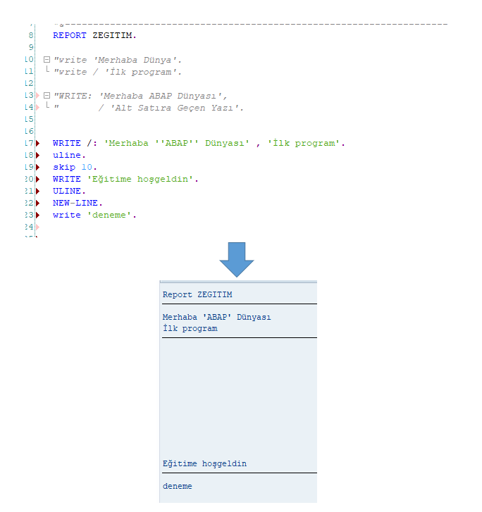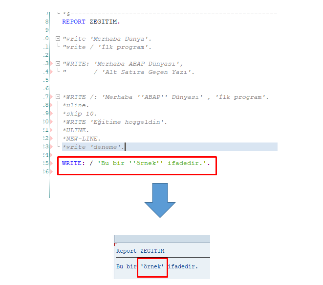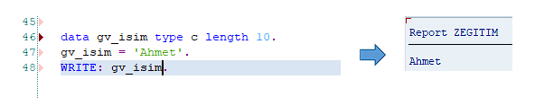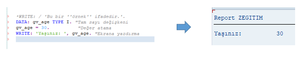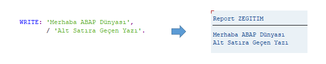 WRITE: ‘Merhaba ABAP Dünyası’,