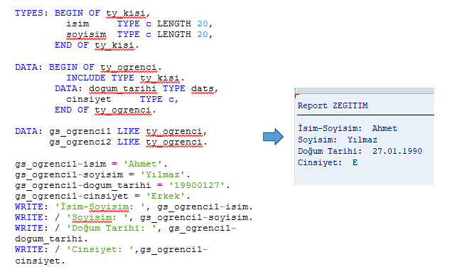 Artık oluşturduğumuz ZOGRENCI yapısını programlarımızda doğrudan kullanabiliriz.