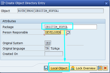 Not: Eğitim süresince yazacağımız programlar yalnızca geliştirme ortamında kalacak ve diğer sistemlere taşınmayacaktır. Bu nedenle programlarımızı Lokal Nesne (Local Object) olarak kaydedeceğiz.