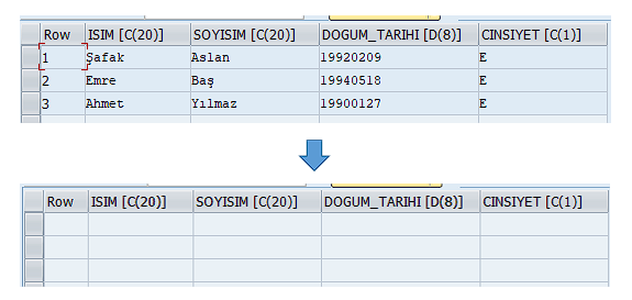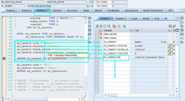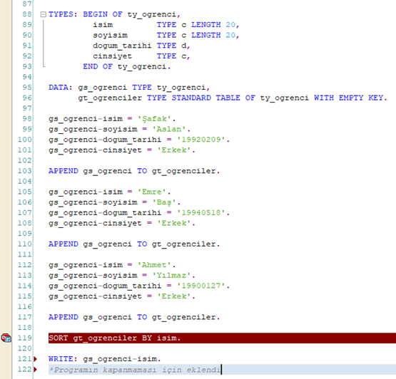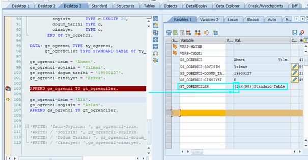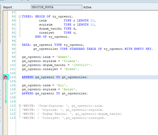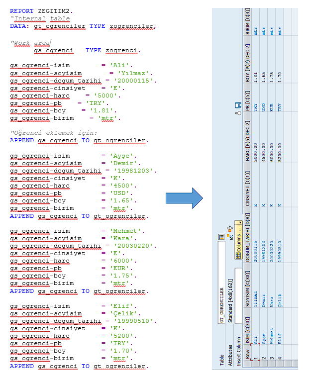 Öğrenci eklemek için: APPEND gs_ogrenci TO gt_ogrenciler
