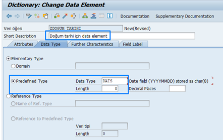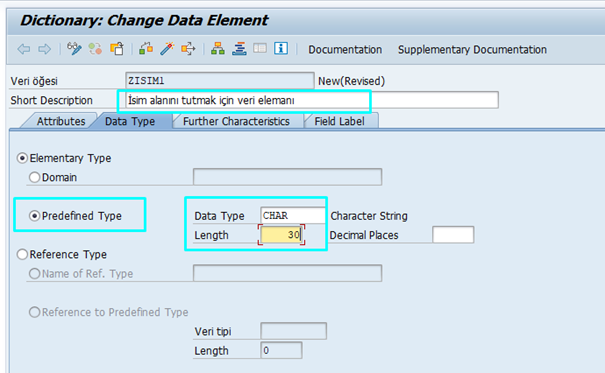 Örneğin, ZISIM isminde bir data element tanımladıysak, programda: