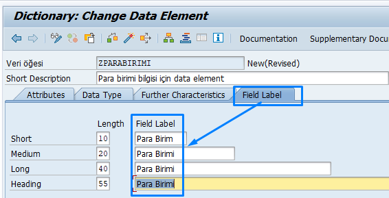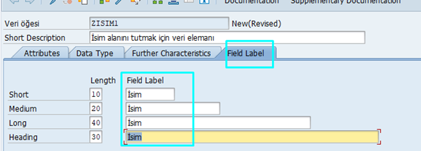 PARAMETERS: p_isim TYPE zisim. yazdığımızda, selection ekranında otomatik olarak “İsim” başlığı gelir.