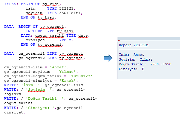 • Programlarda TYPE Z… şeklinde structure’u çağırarak kolayca kullanabiliriz.