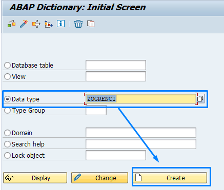 1. SE11 ekranına giriyoruz.