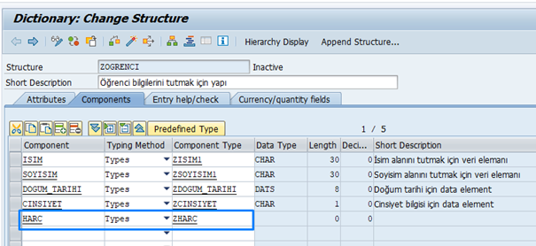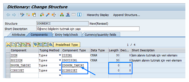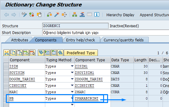 5. Line Type kısmında, daha önce oluşturduğumuz ZOGRENCI structure’ını seçiyoruz.