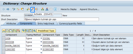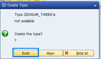Burada, internal table’ın Data Dictionary karşılığı olan Table Type tanımlamayı öğrendik.