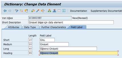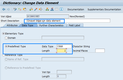 Örnek: ZCINSIYET Data Elementi