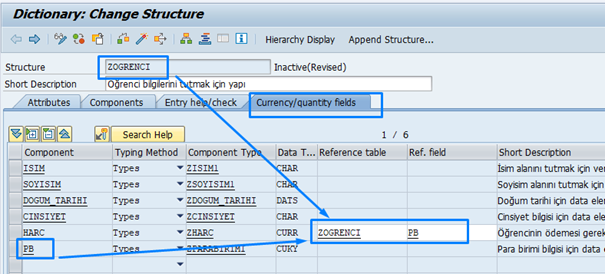 Önceki konularımızda structure tanımlamayı görmüştük. Burada ise, structure (ve daha sonra tablolar) içerisinde para birimi (currency) ve birim (unit) gibi referans alanları nasıl kullanacağımızı öğreneceğiz. SAP’de eğer bir alan miktar veya para tutarı gibi değerleri ifade ediyorsa, bu alanın hangi para birimine veya hangi ölçü birimine ait olduğunu belirtmemiz gerekir. Aksi halde sistem bize hata verecektir.