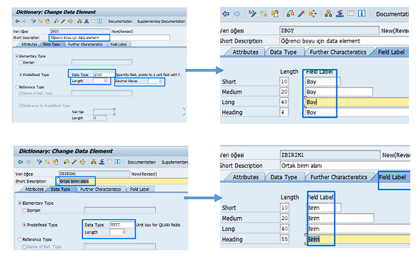 • Parametre veya select-option tanımlarken de Data Dictionary’deki data element’ler otomatik olarak başlık (field label) bilgisini taşır.
